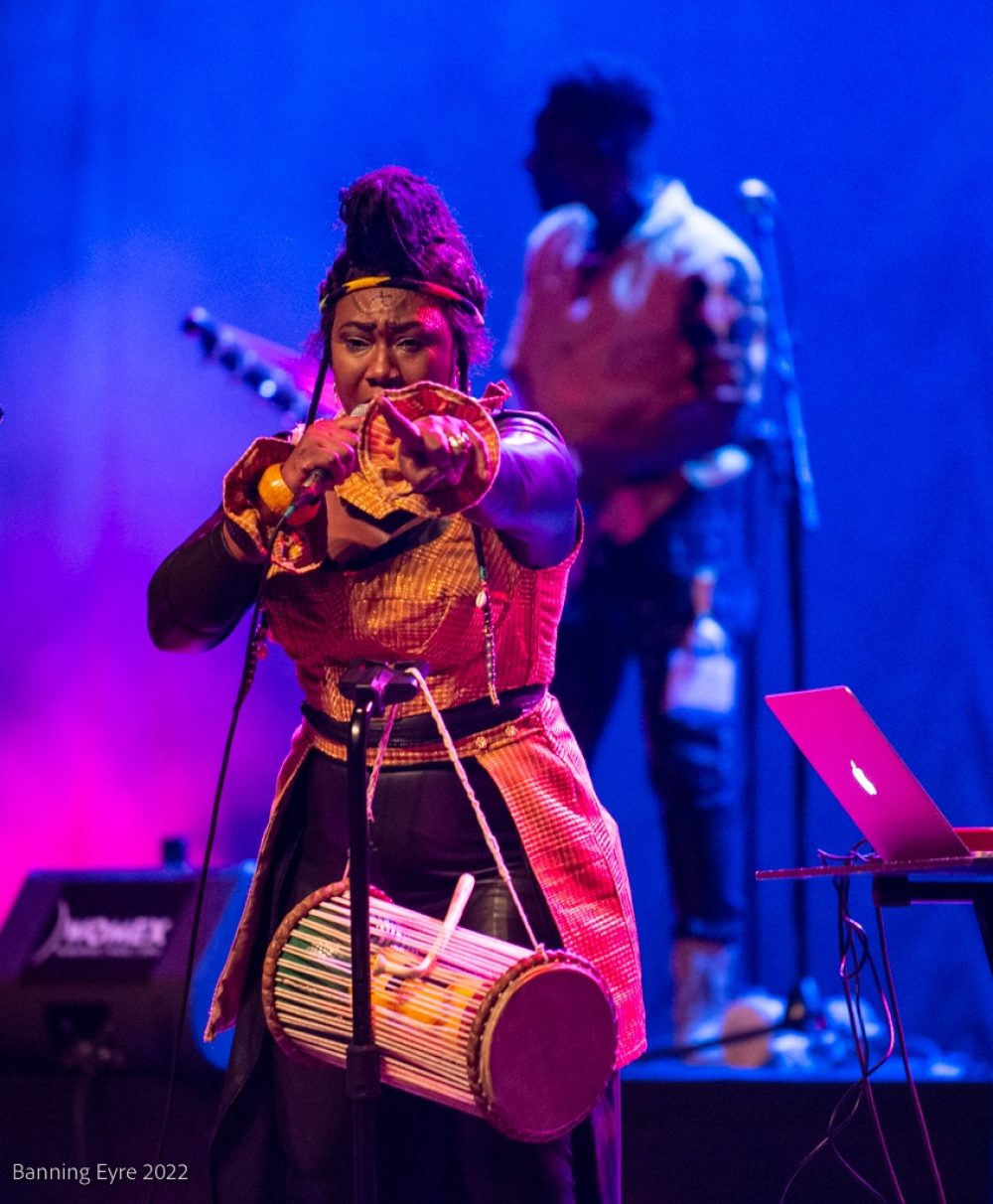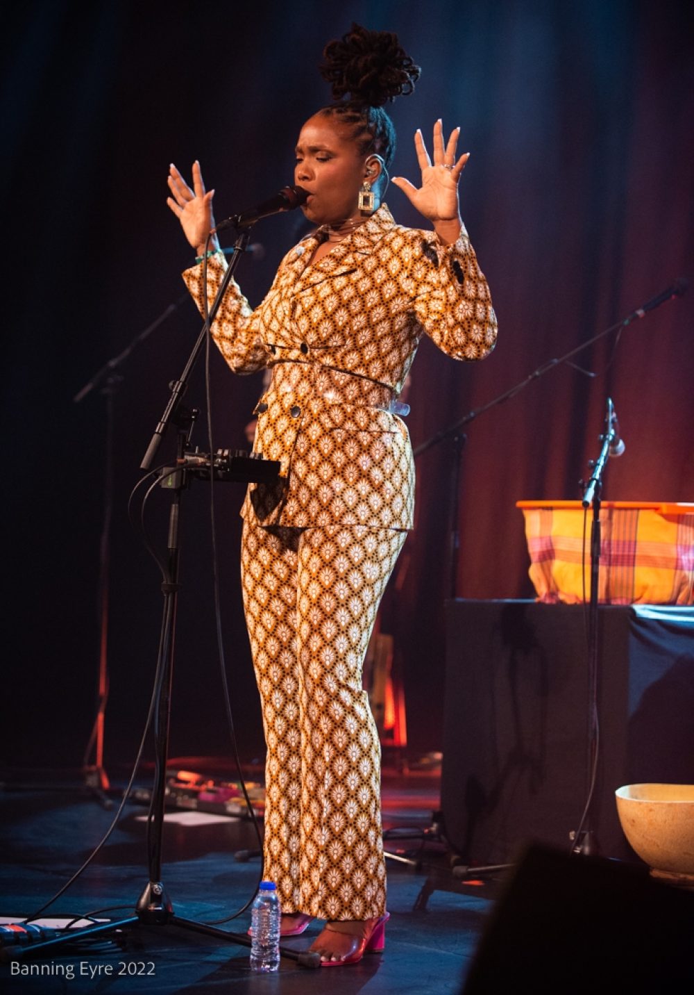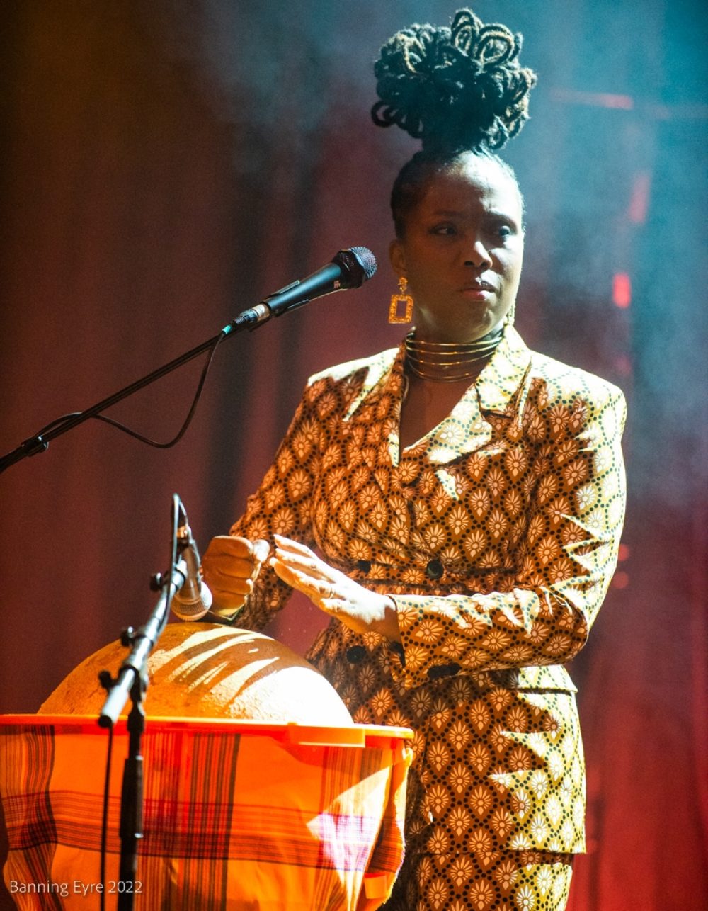 Daughter of Malian jelimuso extraordinaire Kandia Kouyate, and a self-proclaimed champion of Afrofuturism, Montreal-based Djely Tapa has already appeared on two Afropop Worldwide programs in 2022, most recently in her impromptu Nuits d’Afrique set with guitarist Derek Gripper and kora player Zal Sissoko. At WOMEX she unleashed the power of her own band, delivering a forceful and original take on 21st century Mande pop.