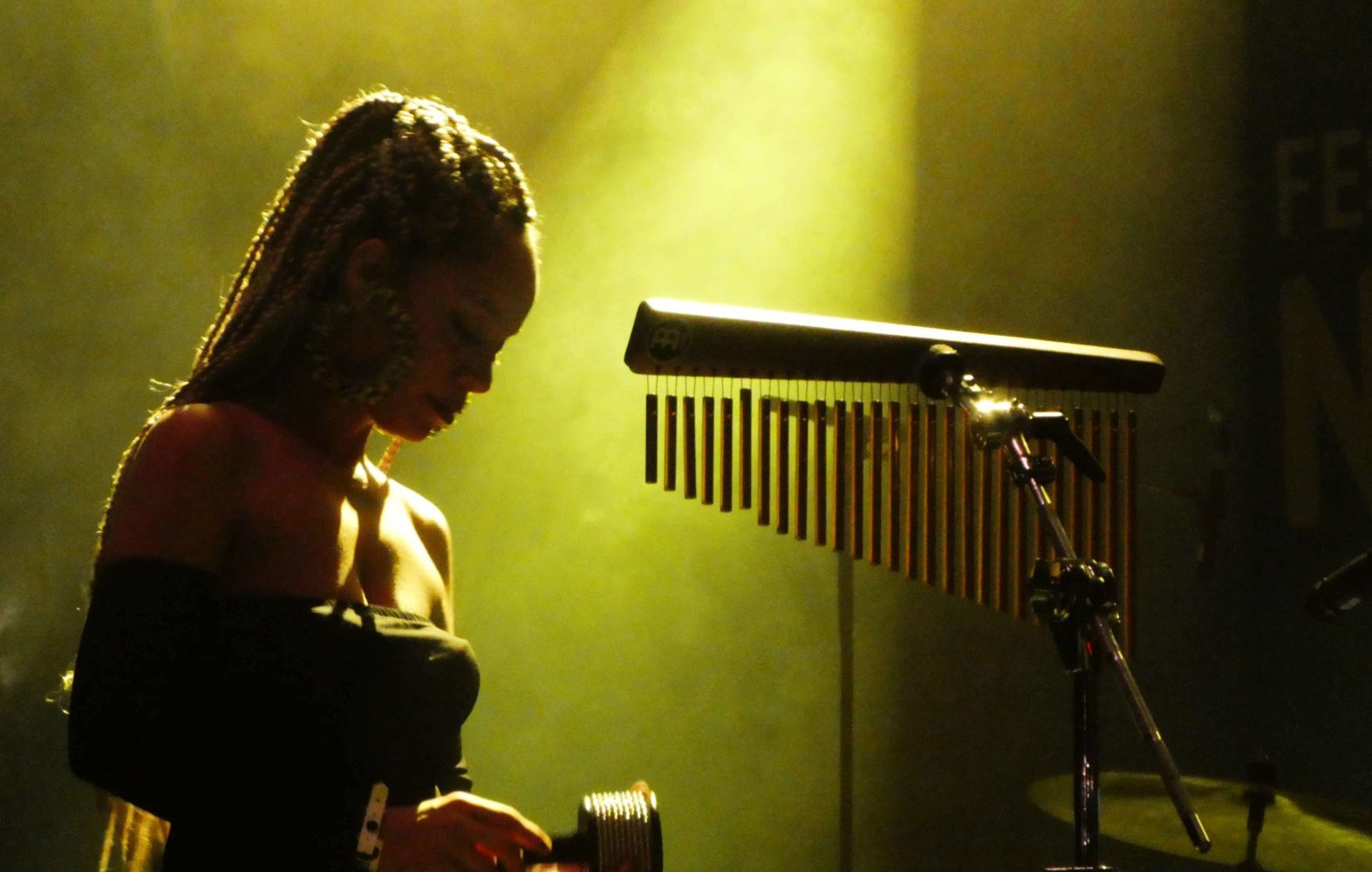 Another audio treat was Votia, from the island of Reunion, who performed both indoors at Club Balattou and at the outdoor festival stage. With just voices and percussion instruments, including the traditional kayamb, Votia transported the audience was to another time and place–-to the time of the kabars, where slaves, then later, former slaves, would gather and dance to the traditional maloya, a rhythmic blues sound. These locations were a tightly held secret, as they were banned by the slave owners and then later, the French colonial authorities. The group is led by Marie-Claude Lambert-Phileas, daughter of Gramoun Lélé, one of the grand masters of the maloya beat and vodou singing chants, and she was joined on stage by her family, including her children, husband and cousins.