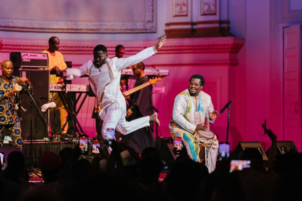 Arriving on stage in a midnight-blue grand boubou, N’Dour fronted an 11-piece ensemble, including some new faces but also key members who’ve been with him for decades. Throughout a two-hour and 20 minute show—by my count a few minutes longer than Burna Boy’s show—N’Dour played some 28 songs stretching out generously and sometimes linking song-to-song without a pause. N’Dour was not aiming for the international hits. Few of those songs contained any English, and well-known standards like “Immigres,” “Birima” and “Set” were bundled together near the end of the show. As an example of N’Dour’s prolific output, I have about 24 of his albums, including a number released only in Senegal, and the Carnegie Hall set list included at least 10 songs I find on none of those recordings.