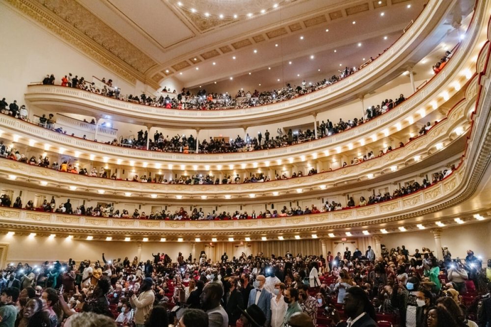 Just weeks after singing the opening song—his indispensable anthem “New Africa”—at Burna Boy’s sold-out Madison Square Garden show, 62-year-old Youssou N’Dour pretty much sold out the equally prestigious, if smaller, Carnegie Hall. The Carnegie Hall crowd was, like Burna Boy’s, mostly African. But this time most were Senegalese. That was evident by their elastic dance moves and their knowledge of N’Dour’s complex lyrics. These Africans were fabulously turned out, especially a large contingent of slim women in elegant, sparkling gowns and elaborate hair weaves. Maybe they weren’t as young as the Burna Boy fans, but still a good deal younger than the grey-beard Americans like myself who also attended. Many of us have been listening to N’Dour for a good 35 years, longer than a lot of the Carnegie Hall fans who attended have been alive. That is staying power.